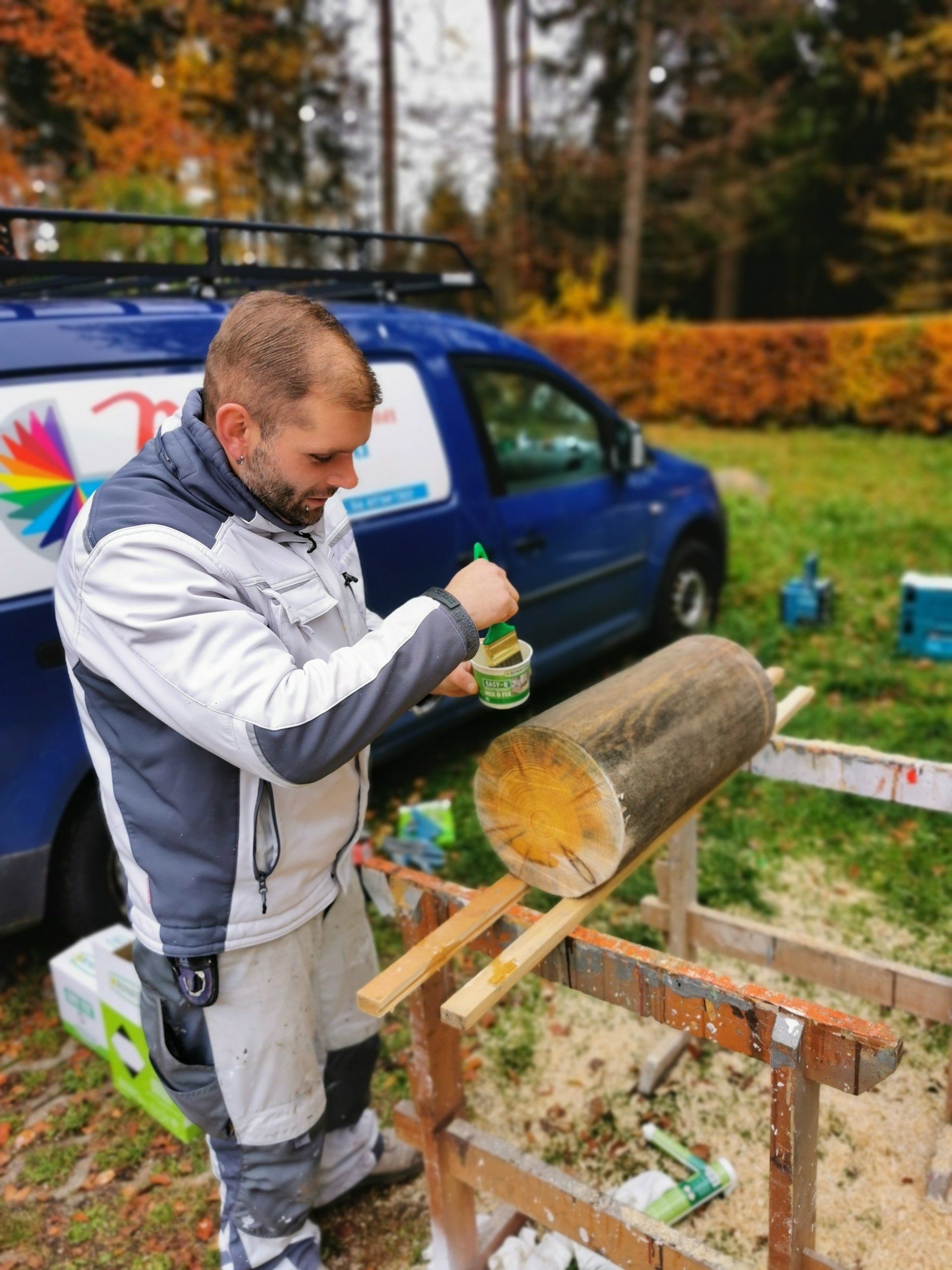 - Grundierung der Holzflanken und Risse 2-K Grundierung